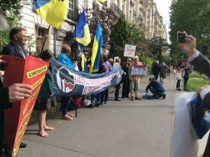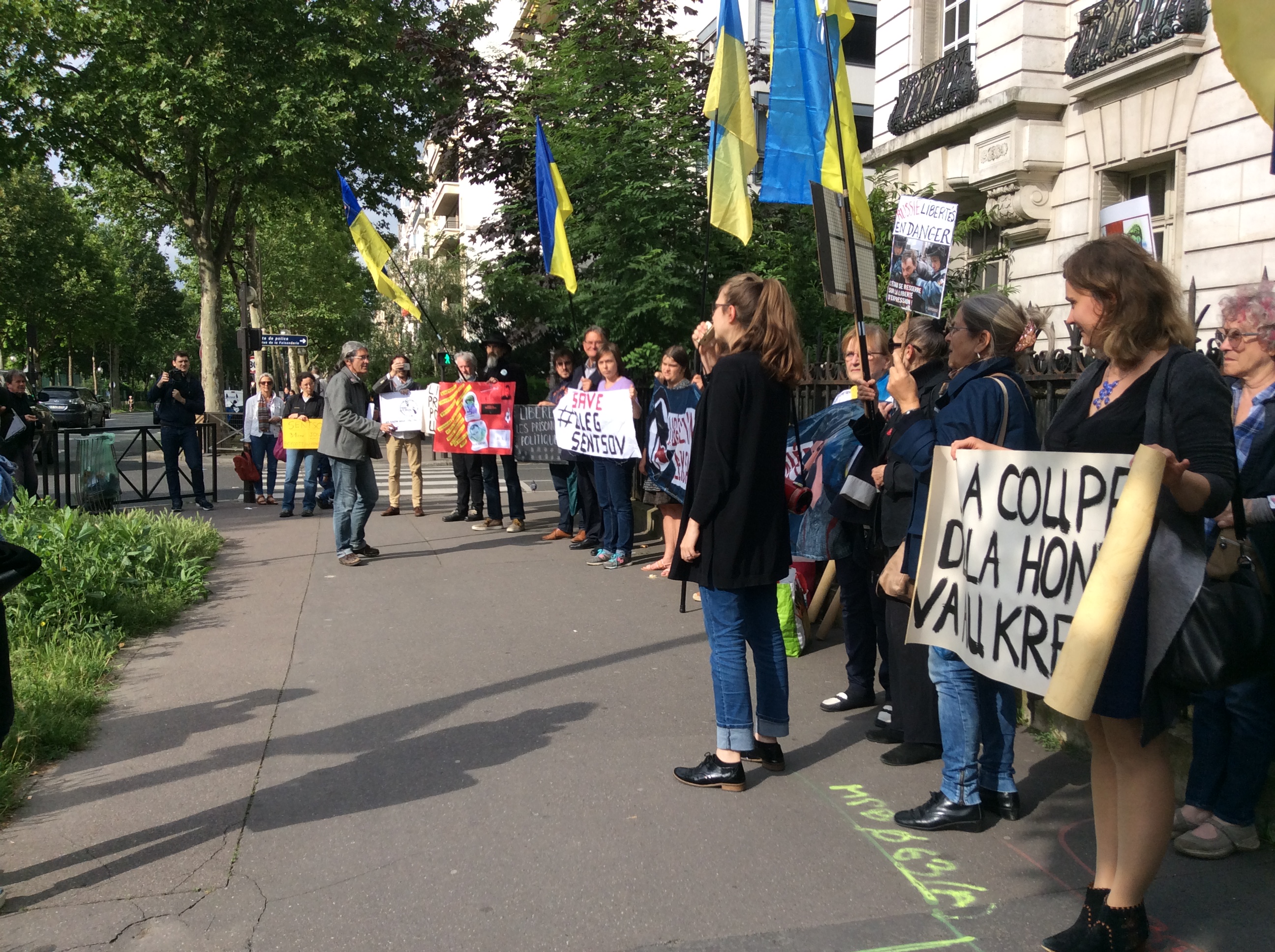 Le rassemblement pour la libération de Sentsov et Koltchenko a réuni 41 militants le 13juin 2018. La police, soucieuse d’éviter tout désagrément aux autorités russes qui détiennent plus de 70 prisonniers politiques ukrainiens a assigné aux manifestants un coin du Boulevard Lannes, suffisamment éloigné de l’entrée de l’ambassade russe.