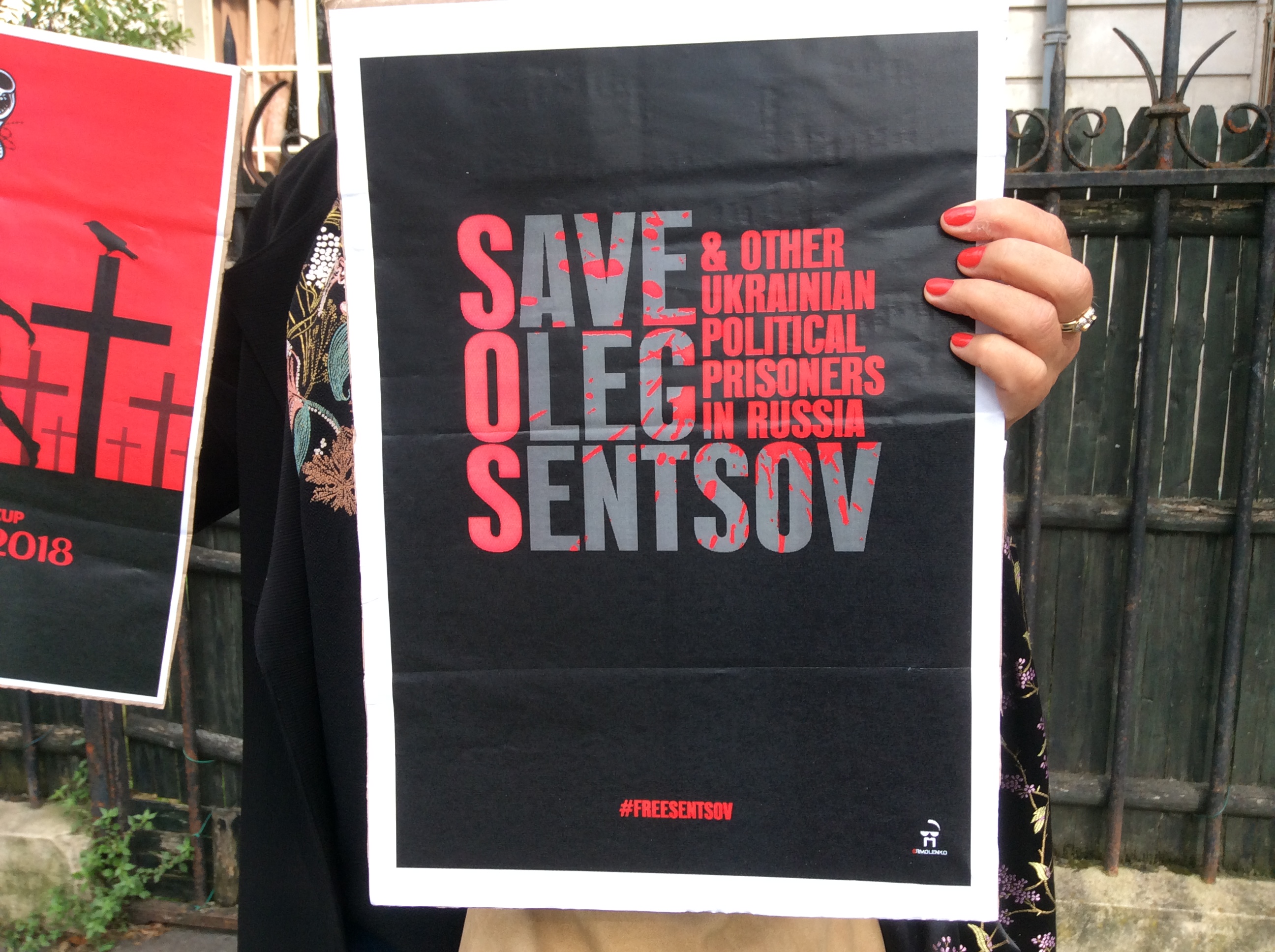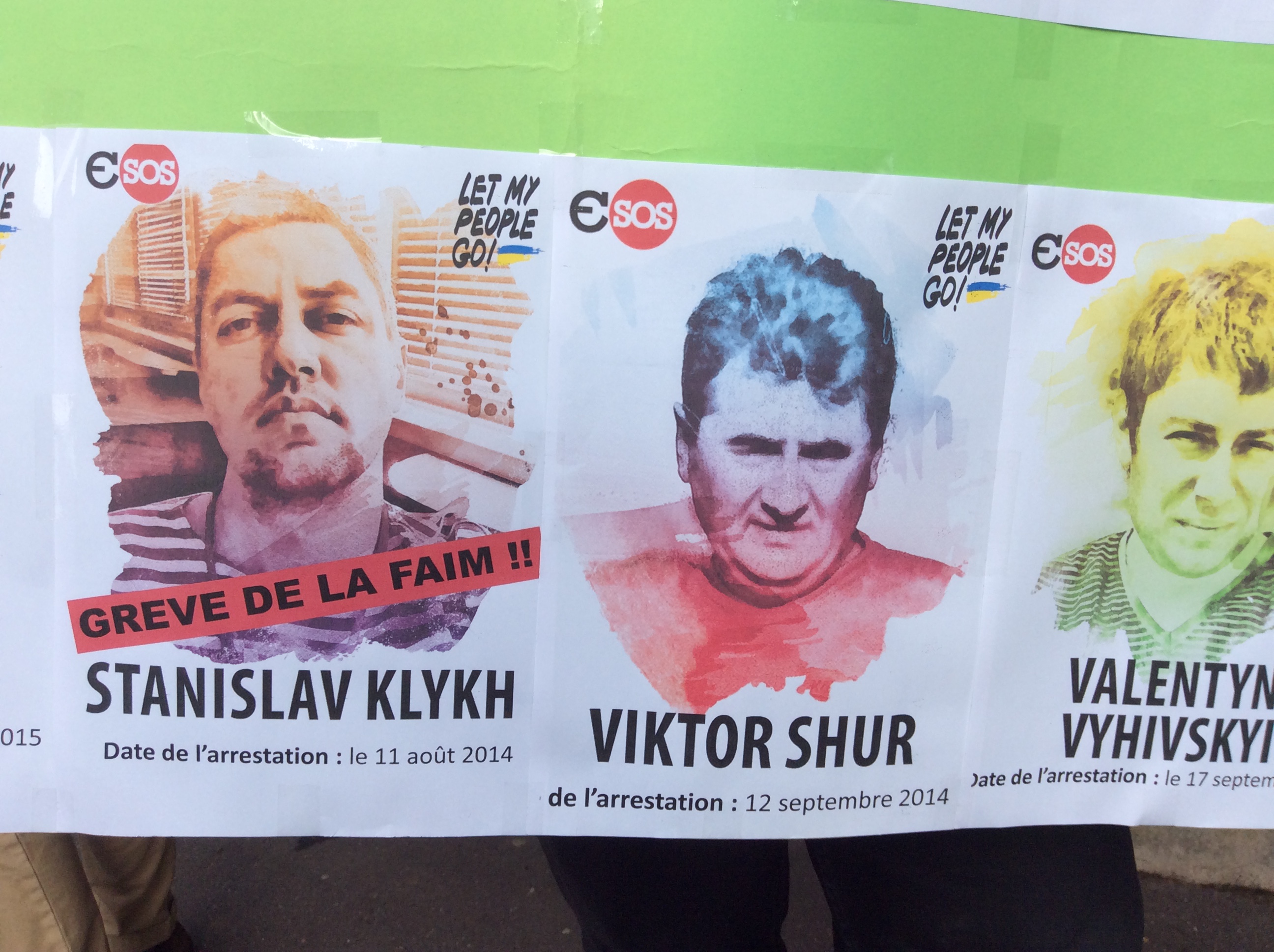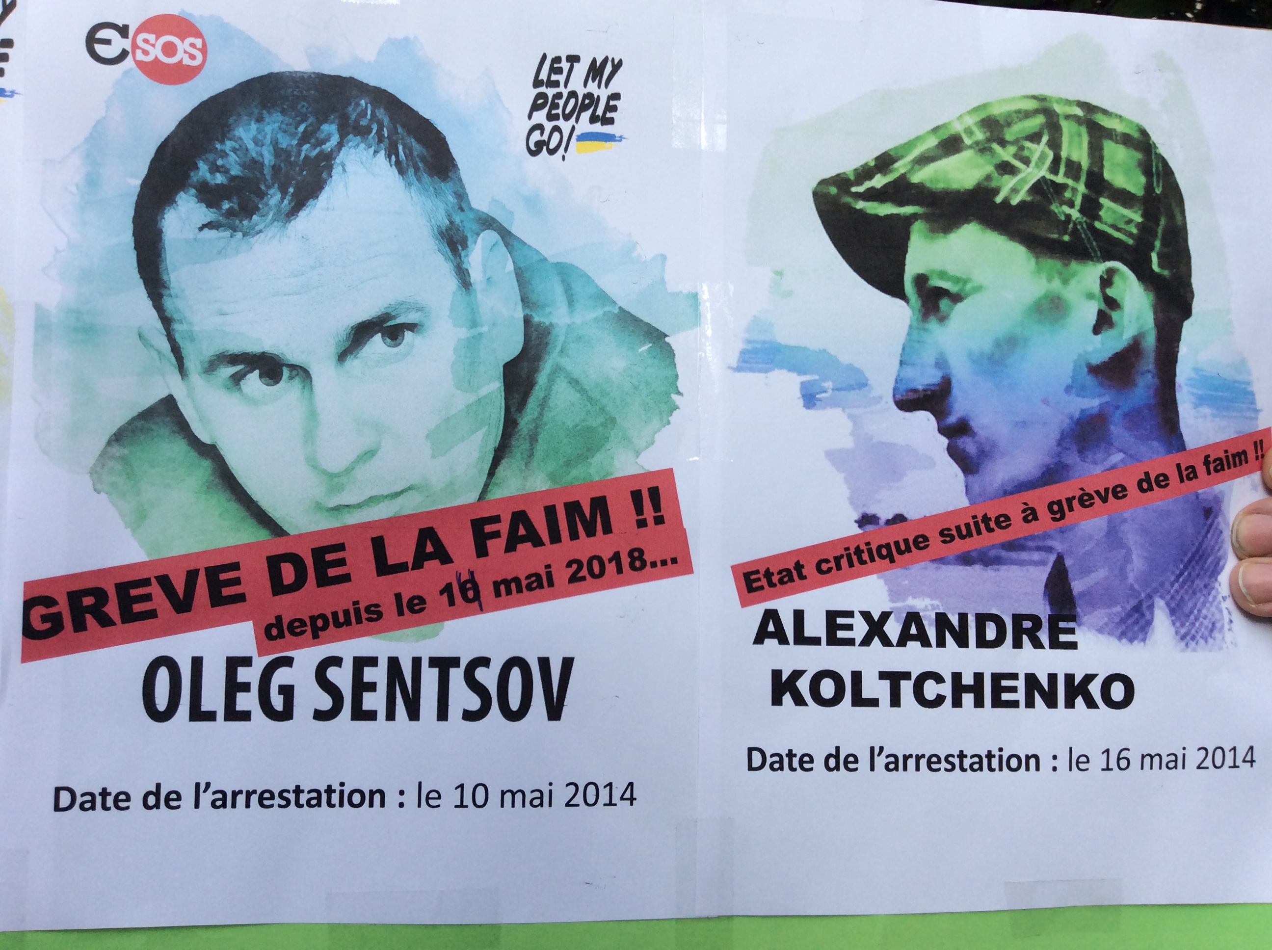 Cela n’a pas empêché les manifestants de déployer des banderoles réclamant la libération immédiate de Sentsov, de Koltchenko et de leurs camarades, et des panneaux présentant les prisonniers, la date de leur arrestation et des informations sur leur état de santé. Plusieurs prisonniers sont en effet dans un état de santé critique dont Sentsov et Koltchenko. Un autre prisonnier politique, Stanislav Klykh est à son tour engagé dans une grève de la faim.