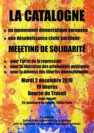 # C’est pourquoi nous vous invitons à participer et à faire connaître largement le meeting de solidarité que le Collectif pour la Libération des prisonniers politiques catalans organise à Paris le mardi 3 décembre à 19h à la Bourse du Travail de Paris.
