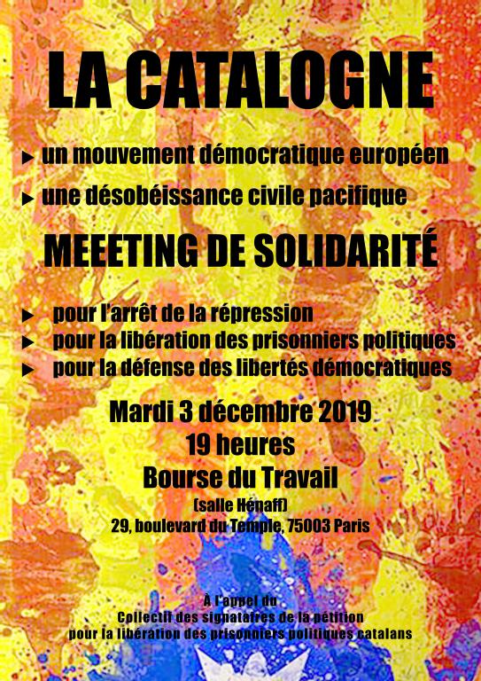 # C’est pourquoi nous vous invitons à participer et à faire connaître largement le meeting de solidarité que le Collectif pour la Libération des prisonniers politiques catalans organise à Paris le mardi 3 décembre à 19h à la Bourse du Travail de Paris.