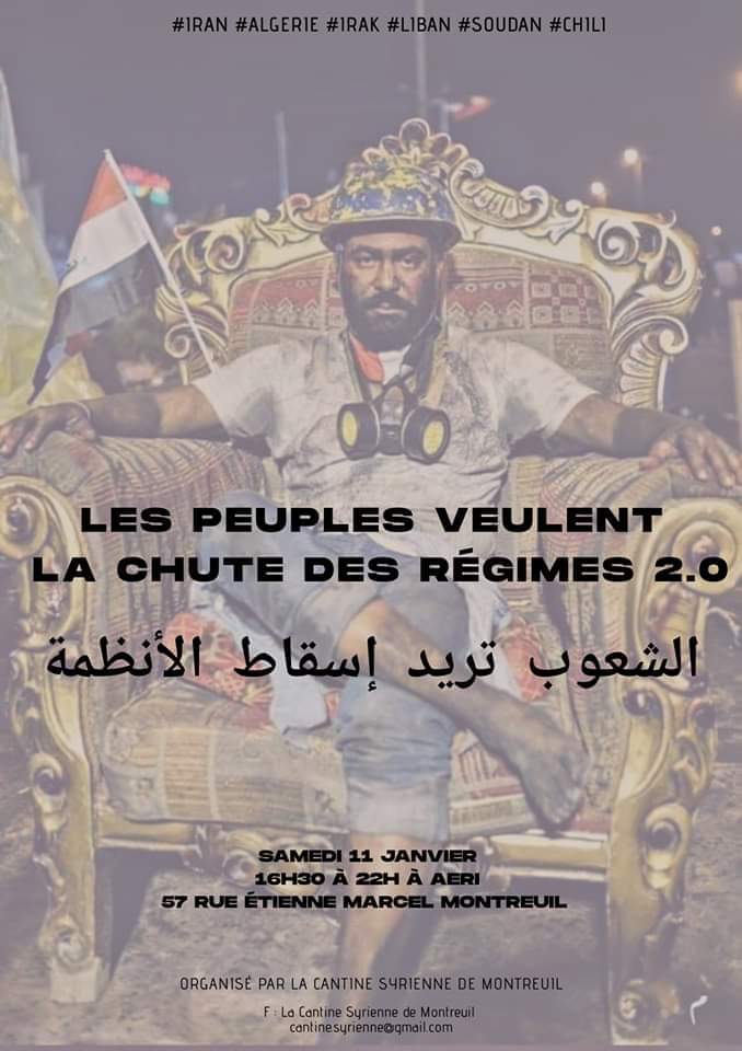 17h-19h30 : Interventions ou messages d’activistes et chercheurs.e.s impliqué.e.s dans différentes révoltes de 2019 (Iran-Liban-Soudan-Algérie-Irak ) sur place ou en exil. Suivis d’une discussion croisées entre les intervenant.e.s sur les circulations internationales entre ces soulévements et sur les tâches de l’internationalisme aujourd’hui