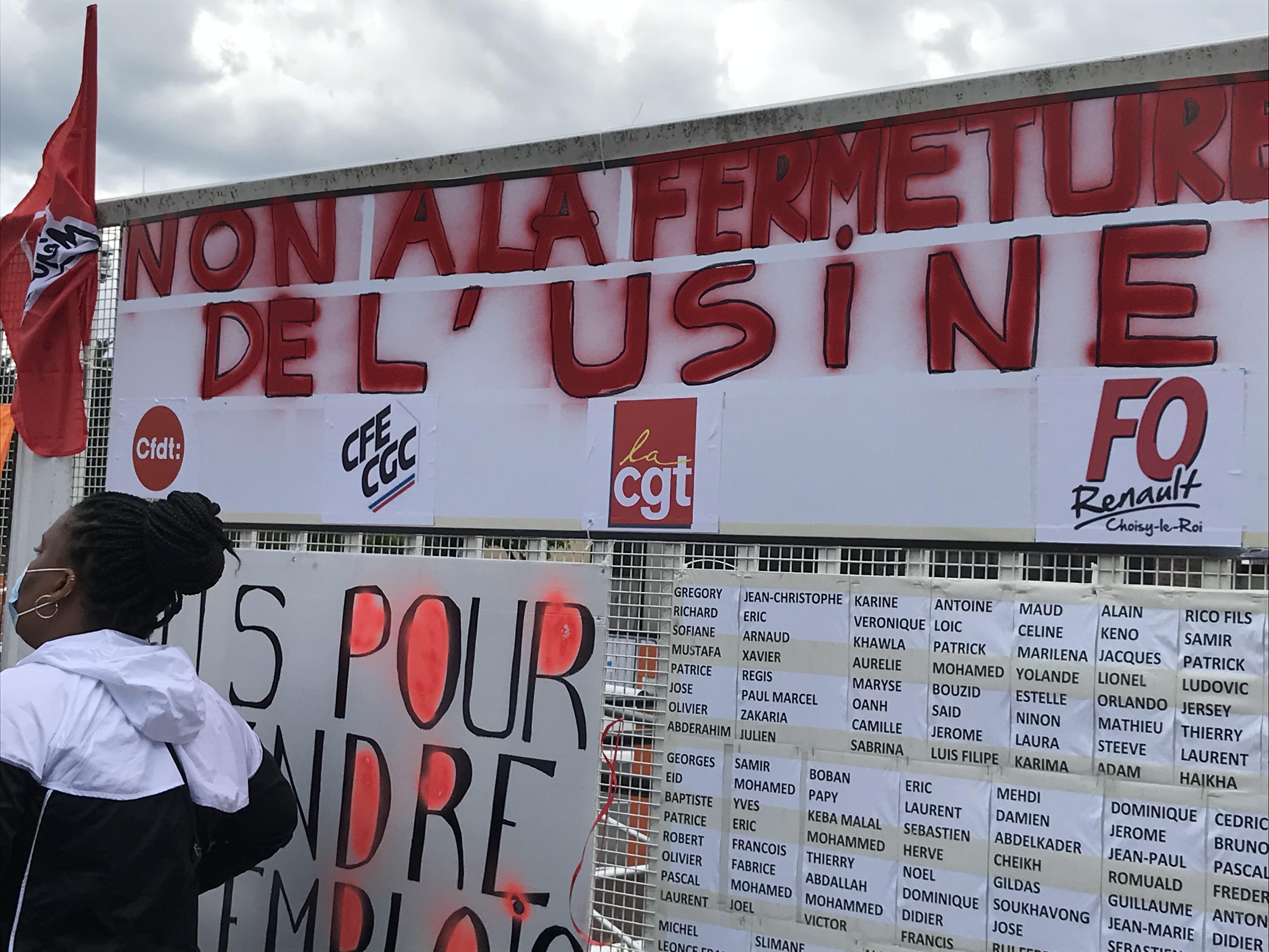 Devant le site fermé, les prises de parole syndicales se sont succédées : le délégué FO, le délégué CFE-CGC, celui de la CFDT, celui de la CGT , exprimant tous le refus des salariés du site de subir les mises à la retraite ou une mutation forcée à Flins, synonyme de déchirement des familles. Puis vinrent les prises de parole des soutiens syndicaux : Ali Kaya, pour la CGT Renault Flins, dénonçant avec force les menaces planant dès aujourd’hui sur le site de Flins, Jean-Pierre Mercier pour la CGT du groupe PSA appelant les salariés à placer leur combat pas seulement dans la perspective de la défense de leur seule usine mais bien celle des emplois de tous les secteurs face à l’offensive patronale voulant solder les frais de la crise économique et sanitaire sur le dos des salariés.