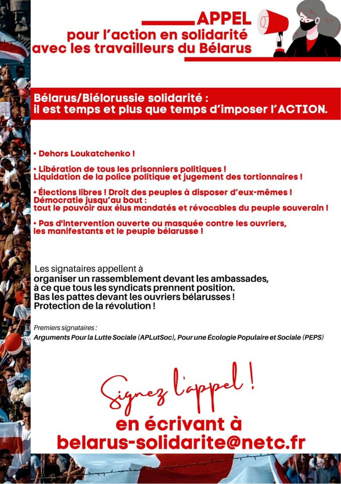 > aplutsoc posted: « La bataille pour une manifestation de défense de la > révolution bélarusse est engagée. Signez et faites cet appel pour la tenue > d’une manifestation de soutien aux grévistes et aux revendications > démocratiques et populaires en Belarus ! Appel Solidarité B » >