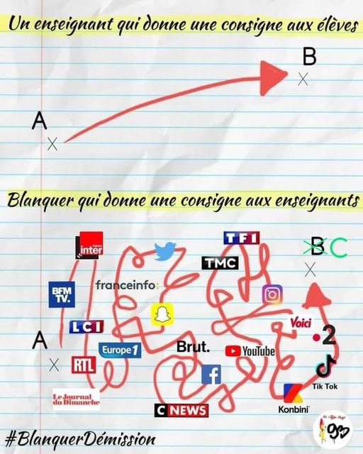 Manifestement, un certain Blanquer Jean-Michel a appris en écoutant Macron le 28 octobre, que les établissements scolaires devaient avoir un « protocole sanitaire renforcé » pour la rentrée du 2 novembre. Blanquer a pondu une nouvelle sorte de protocole : le « protocole sanitaire renforcé si vous le pouvez ». L’organisation de la contagion, assortie de la menace de la double journée de travail « présentiel/distanciel » pour les personnels de l’enseignement, s’en est suivie à partir du 2 novembre. Mais ce n’est pas tout : M. Blanquer avait, le 27 octobre, demandé à tous les établissements de la maternelle au lycée de n’accueillir les élèves qu’à partir de 10H le lundi de la rentrée, pour organiser les hommages à Samuel Paty, hommages voulus vivement par les personnels. Il n’avait visiblement pas pensé que les élèves sont souvent emmenés par les transports scolaires dès 8H, mais établissements et écoles s’étaient organisés. Une fois tout cela au point, M. Blanquer – dans le détour de phrase d’un message aux personnels – abroge vendredi soir toutes ces dispositions en prescrivant la reprise des cours aux heures habituelles, prétendant interdire toute réunion des personnels et normaliser les hommages à une minute de silence et à la lecture du premier paragraphe de la Lettre de Jean Jaurès aux instituteurs et institutrices de janvier 1888 – un document choisi car il avait été cité à la cérémonie d’hommage national du 21 octobre, à la demande de la famille d’instituteurs laïques de Samuel Paty.