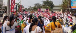 ; grève et manifestation des aides soignantes pour leurs revendications et en soutien au paysans dans l’Andhra Pradesh :