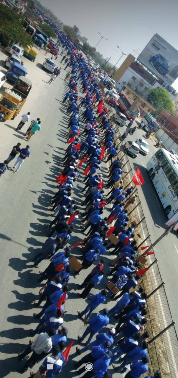 ; manifestation des travailleurs de Toyota à Bidadi, Bengalore. soutenus par les paysans contre les licenciements :