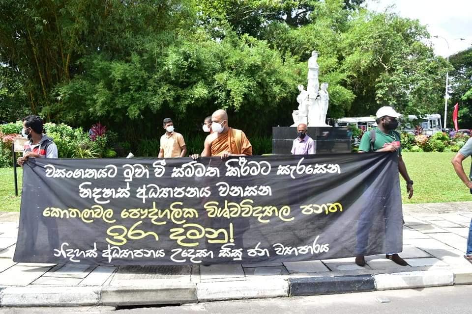 Vous savez peut-être que le gouvernement sri-lankais utilise une approche militariste dans la situation actuelle sur tous les fronts en ce qui concerne les étudiants, les travailleurs et les paysans. Toutes les manifestations sont réduites ou interdites sous prétexte de Covid-19 et dans de nombreux cas, les travailleurs sont pénalisés par la limitation de leurs mouvements.