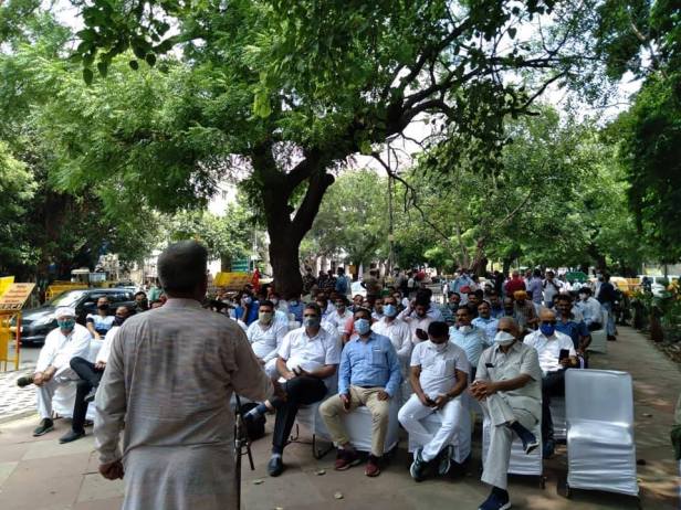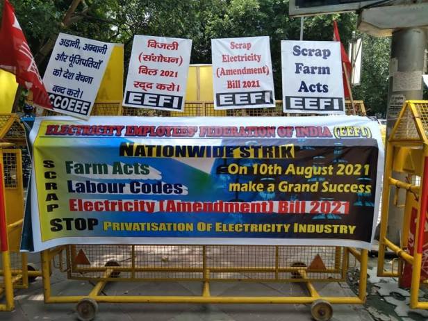 Les ouvriers des aciéries publiques, en lutte contre leur privatisation depuis 170 jours – notamment à Viskhapatnam dans l’Uttar Pradesh – , sont venus tenir un sit-in/Parlement ouvrier les 2 et 3 août. De même, les ouvriers et employés du secteur public de l’électricité, eux organisent un sit-in/parlement du 3 au 6 août toujours sur la même place, également contre leur privatisation et avant une journée de grève générale de leur secteur le 10 août coordonnée avec les paysans. Par ailleurs, en même temps que les femmes et les tribus indigènes tiendront le parlement paysan du 9 août, comme symbole de la lutte des paysans contre l’oppression des femmes et des tribus, un appel ce jour-là a été lancé par plusieurs grands syndicats ouvriers coordonnés aux paysans à une journée nationale d’action dans tout le pays et à Delhi contre le gouvernement, pour « sauver la démocratie, sauver le pays » des griffes de Modi et du grand Capital.
