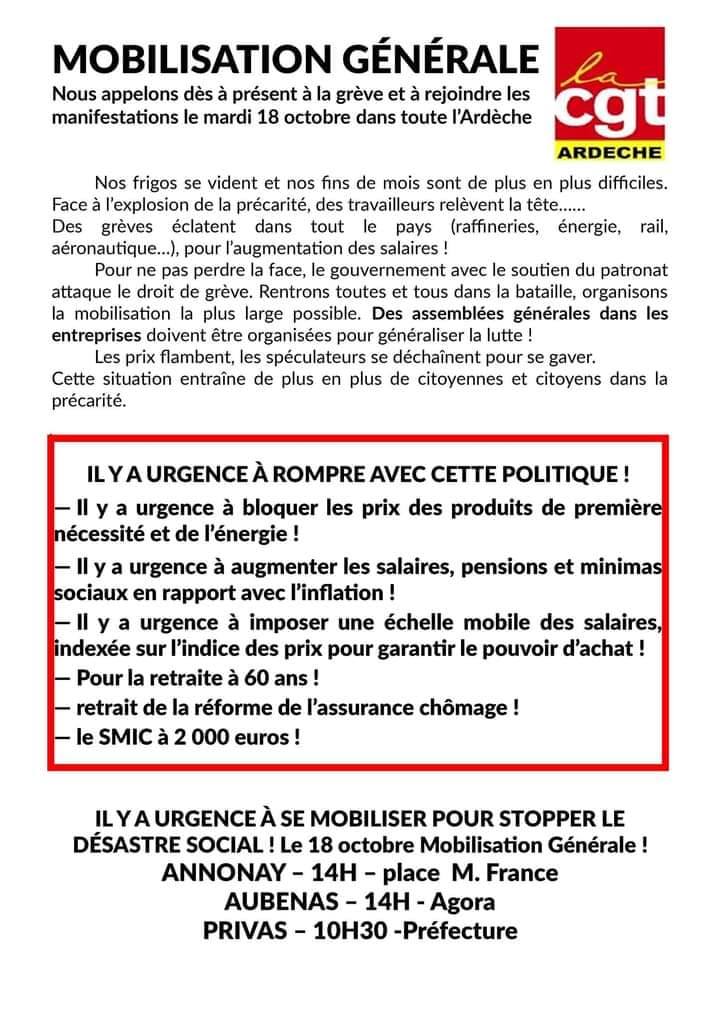La CGT est conduite à appeler à l’action en soutien aux raffineurs et contre les réquisitions mardi 18 : allons-y !