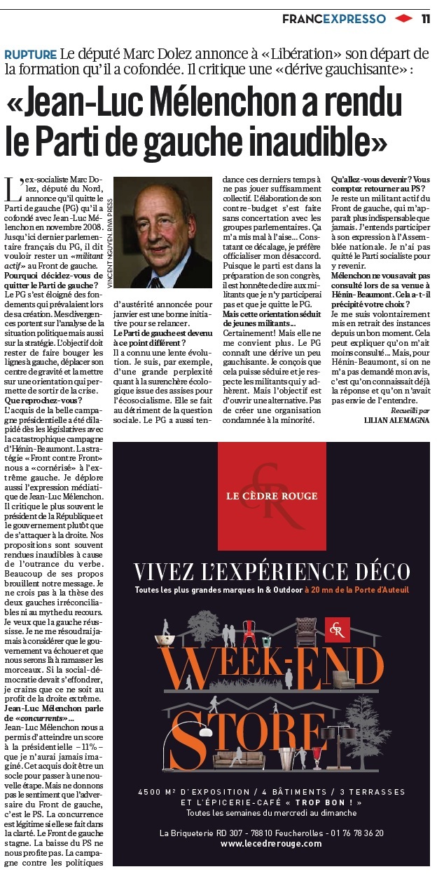 - Interview de Marc Dolez en décembre 2012 dans Libération