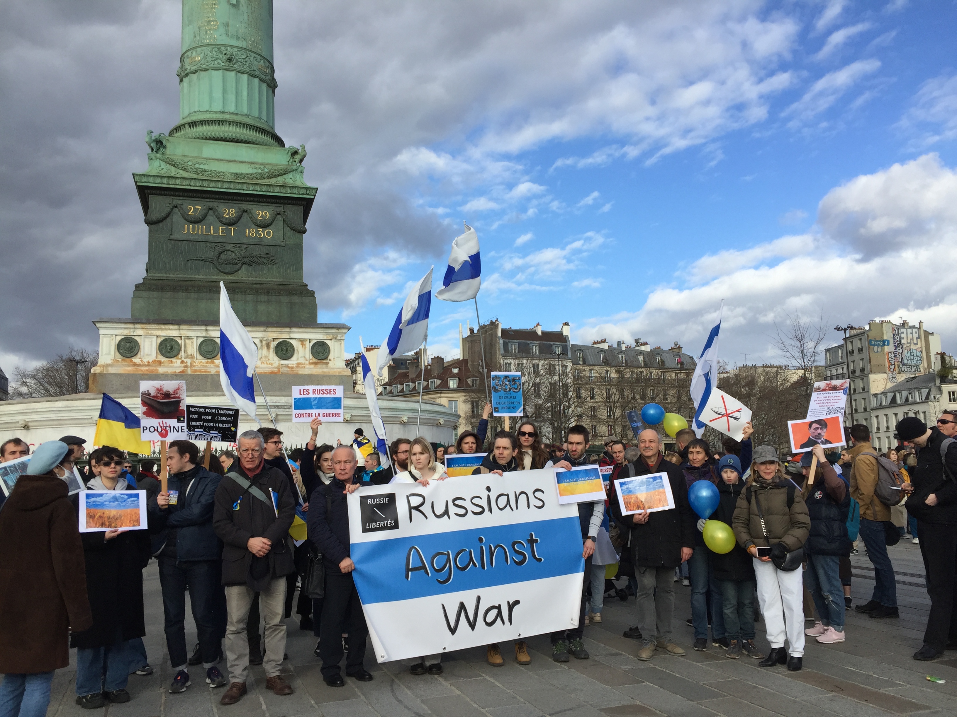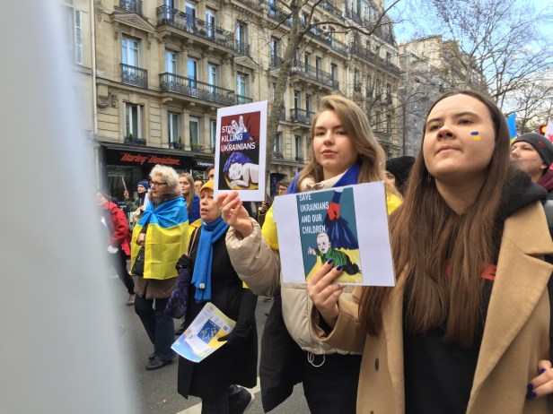 Ce fut ensuite la manifestation parisienne du samedi 25, avec des milliers de participantes, d’abord, et de participants, de l’émigration ukrainienne – et russe, et bélarusse, et géorgienne, et tatare – dont de nombreuses réfugiées récentes, heureuses de voir des manifestants français exiger « des armes pour la résistance, pour chasser Poutine ».