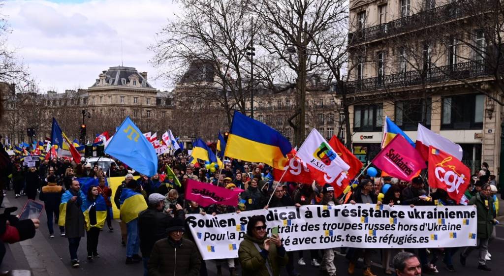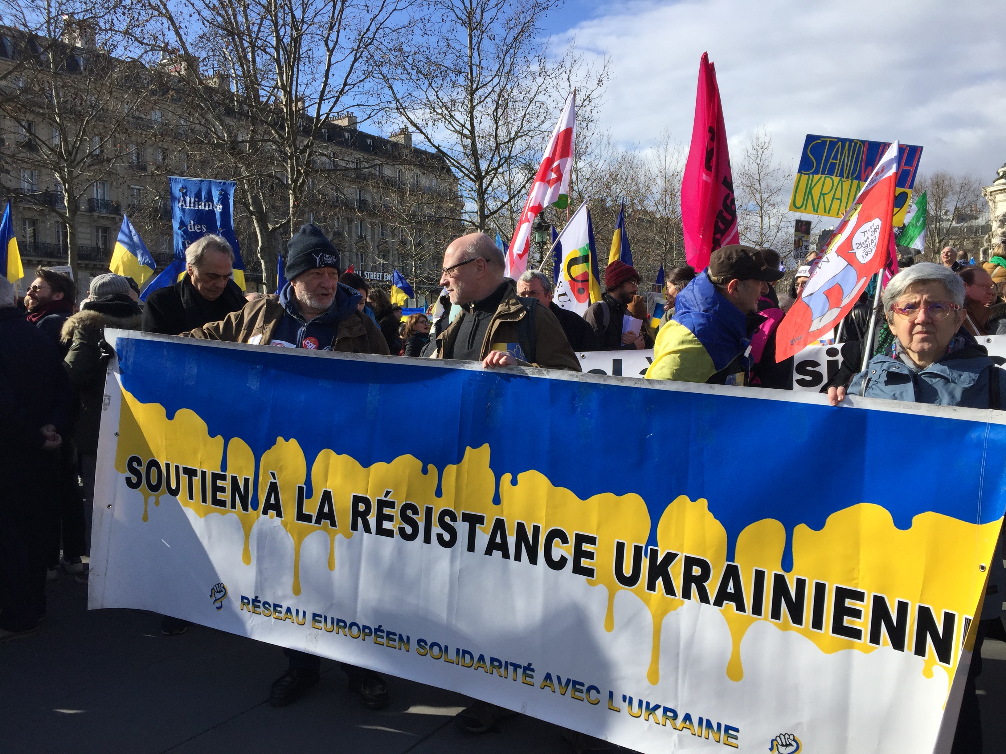 Contrairement à la tonalité « tristounette » de certains articles de presse, notamment ceux de Mediapart et du Monde qui n’ont d’ailleurs vu que quelques centaines de manifestants à Paris là où il y en a bien eu 6000, les militants du RESU (Réseau Européen de Solidarité avec l’Ukraine) en France tirent un bilan positif de la séquence d’évènements liés au triste premier anniversaire, non de la guerre (elle a commencé en 2014), mais de l’attaque de toute l’Ukraine à visée génocidaire.