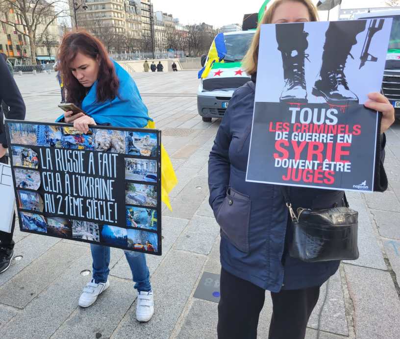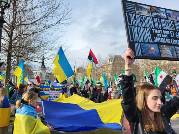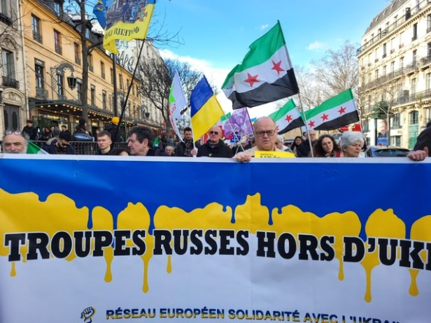 Syrie, Ukraine Syrie – Ukraine solidarité. Marche à Paris le 18 mars 2023, à 15h30 de la Place de la République à la Bastille. Appel et reportage Date: 19 mars 2023Author: aplutsoc 0 Commentaires Syrie – Ukraine solidarité Même combat contre la tyrannie pour la liberté, la démocratie et la justice Marche à Paris le 18 mars 2023, à 15h30 de la Place de la République à la Bastille Syrie-Ukraine-Appel-commun-Marche-18-Mars-2023Télécharger Partager : Cliquer pour partager sur X(ouvre dans une nouvelle fenêtre) X Cliquez pour partager sur Facebook(ouvre dans une nouvelle fenêtre) Facebook Cliquez pour partager sur WhatsApp(ouvre dans une nouvelle fenêtre) WhatsApp Cliquer pour envoyer un lien par e-mail à un ami(ouvre dans une nouvelle fenêtre) E-mail Cliquer pour partager sur Bluesky(ouvre dans une nouvelle fenêtre) Bluesky Cliquer pour partager sur Mastodon(ouvre dans une nouvelle fenêtre) Mastodon Cliquer pour imprimer(ouvre dans une nouvelle fenêtre) Imprimer J’aime chargement…