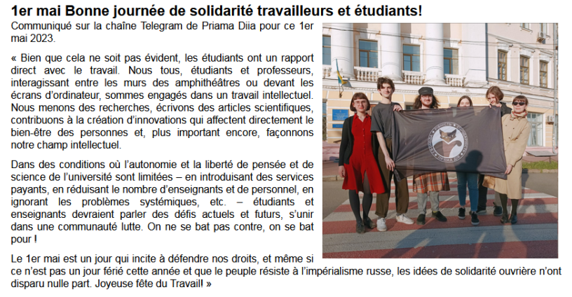 C’est pourquoi notre syndicat d’étudiant·es ukrainien·nes souhaite ouvrir un dialogue avec les étudiant·es de France et leurs organisations. Nous avons besoin de votre solidarité.