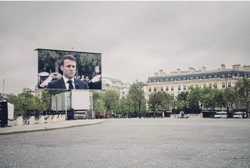 C’est devant des Champs Élysées quasiment vides que Macron – dans la tradition du 8 mai – a présidé la cérémonie commémorant la fin de la seconde guerre mondiale, place de l’Étoile. La presse aux ordres souligne que ce n’est pas bon signe pour « le chef de l’État ». Avez-vous remarqué que dans la tradition bonapartiste qui est celle de cette fin de règne du macronisme, les médias officiels écrivent « le chef de l’État » et non « le président de la République » ?