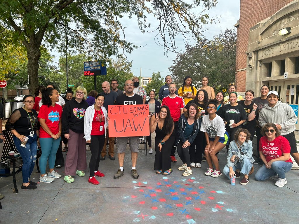 Ci-dessous : grévistes de l’UAW et personnels des écoles de Chicago en solidarité.