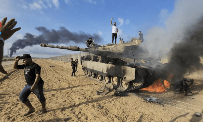 Le chiffre de 22 tués par balles en territoire israélien et de plusieurs centaines de blessés, civils ou militaires, principalement sous l’effet des bombardements, donne un aperçu partiel de l’ampleur des combats. On peut voir sur les chaînes d’infos des images de combattants palestiniens triomphant, sur une carcasse de tank israélien en flammes. La dernière fois que l’on avait pu voir de telles scènes, c’était lors de la levée populaire en masse des Ukrainiens contre l’invasion de Poutine.