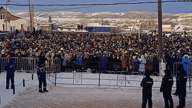 Au Bachkortostan, près du palais de justice de la ville de Baymak, où le militant Fail Alsynov a été condamné ce matin [17 janvier], une manifestation spontanée s’est poursuivie pendant plusieurs heures. Plusieurs milliers de personnes ont exigé la libération du défenseur du mont Kouchtau, condamné à une peine de prison.