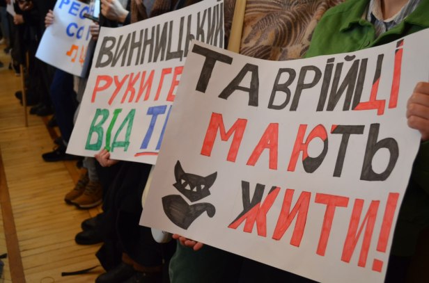 Hier, 25 janvier, s’est tenue à l’université une réunion, à laquelle devait participer le vice-ministre de l’Éducation Mykhailo Vynnytskyi, visage de la réforme en cours. Suite à cette nouvelle, les participants de « Contre la destruction des savoirs » ont organisé une action sous les murs du TNU. Il est important de souligner que la police a été prévenue et qu’aucune objection à l’événement n’a été reçue.