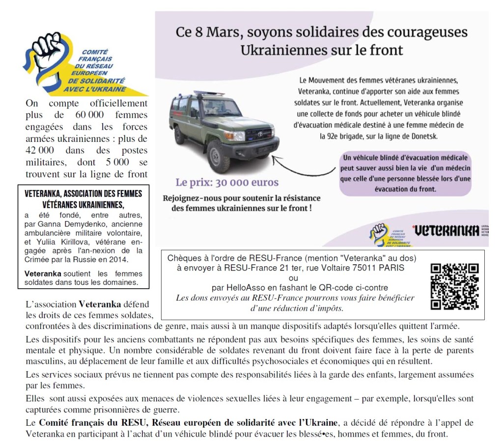 Le Comité français du RESU a organisé ce webinaire avec des camarades de plusieurs groupes et associations féministes et d’entraide, ou mobilisés contre les violences sexistes et sexuelles en Ukraine, et la camarade Tetiana, soldate, dont on doit saluer toute l’importance de ses interventions, car elle nous donne ici le visage vivant de la politique militaire féministe, exactement au même sens et en relation avec la politique militaire prolétarienne, et, sans aucune emphase, fait toucher du doigt la lutte sur deux fronts des femmes ukrainiennes et particulièrement des soldates.