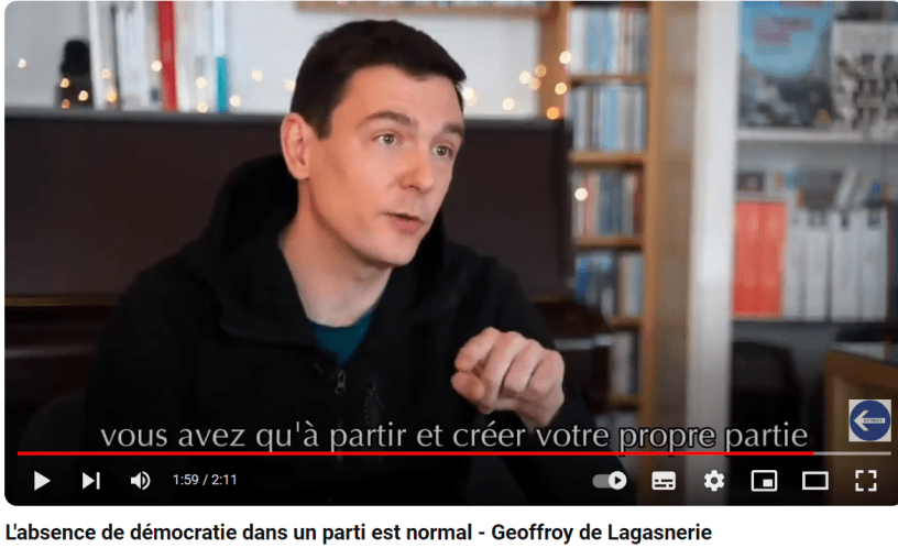 Ces noms parlent peu aux gens, ci-joint, donc, un lien permettant de prendre la mesure des élucubrations (quel autre mot utiliser ?) de ce Lagasnerie. Il s’agit d’une conférence YouTube titrée « L’absence de démocratie dans un parti est normal » (si, si) :