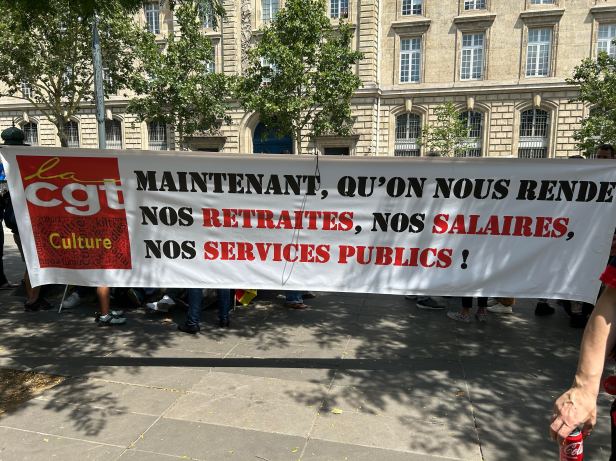 Aperçu du rassemblement à l’appel de la FD CGT Cheminots ce jeudi 18 juillet à République (Paris).