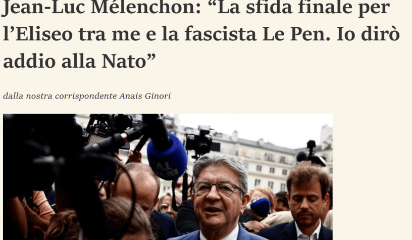 Comme le cadeau fait à Macron et le soutien de fait au régime de la V° République deviennent de plus en plus voyant, il fallait habiller encore et encore. D’où une interview vendredi au quotidien italien la Republicca, dont on retiendra ici le plus directement essentiel sur la question du pouvoir en France. Elle comporte en outre des chicayas avec F. Hollande et quelques perles telles que « Cela ne me regarde pas », à propos de l’enjeu des présidentielles américaines !