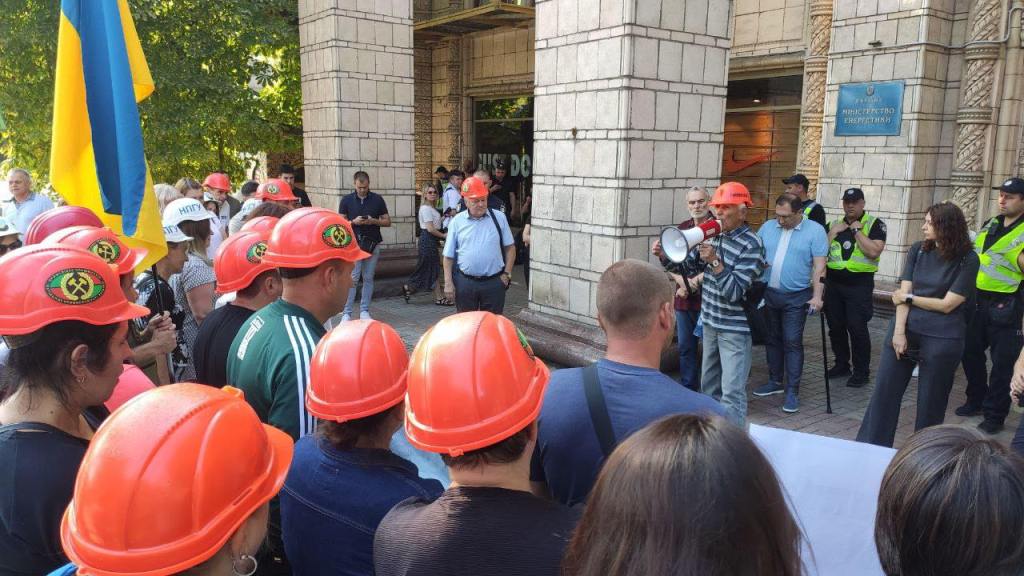 Dans la matinée du 1er août, des mineurs de la région de L’viv ont manifesté près du bâtiment du ministère de l’énergie à K’yiv, avec le soutien de la KVPU (Centrale Indépendante des Syndicats Ukrainiens).