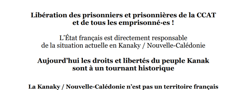 Un très large ensemble de collectifs, de personnalités, d’universitaires et d’élu·es, en solidarité avec le peuple Kanak, prend position pour la libération immédiate des militants arrêtés et affirme que « l’État français est directement responsable de la situation actuelle en Kanaky / Nouvelle-Calédonie ».