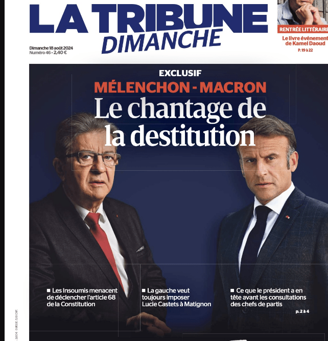 – Auprès de l’opinion en continuant à instaurer un rapport de force entre la gauche et Macron avant leur rendez-vous du 23 août prochain (cf. la Une de la Tribune) là où les syndicats, artisans notables de la victoire du NFP, se hâtent lentement pour appeler à la sempiternelle journée intersyndicale de mobilisation de rentrée.