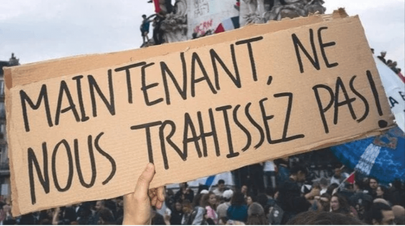 La procédure de dissolution de l’Assemblée Nationale, pouvoir octroyé au président-Bonaparte sous la Vème République, pour soumettre la représentation parlementaire à sa volonté lorsque celle-ci entre en conflit avec l’exécutif, s’est terminée par une défaite politique majeure de Macron. En fait le pays réel est entré concrètement en conflit avec le président, donnant par la force de la mobilisation, appuyée sur les syndicats et association, une majorité parlementaire au Nouveau Front Populaire (NFP).
