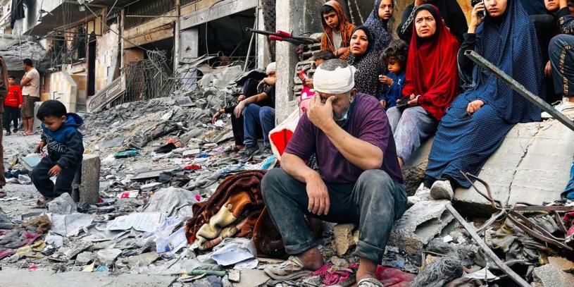 Le secrétaire général de l’ONU, Antonio Guterres, a qualifié la situation à Gaza de « crise de l’humanité ». Outre les lourdes pertes civiles mentionnées plus haut, la guerre a entraîné une destruction massive des infrastructures civiles palestiniennes et contraint 90% de la population de Gaza à des déplacements forcés répétés. La plupart des hôpitaux y ont été bombardés et détruits, et de nombreuses équipes médicales ont été tuées.