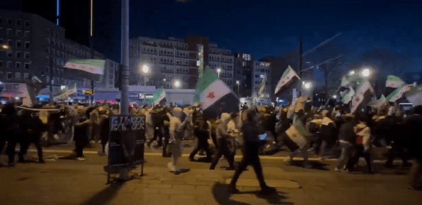 Dusseldorf (RFA) – Manifestation de joie de réfugiés syriens à l’annonce des déboires militaires de la dictature d’Assad.