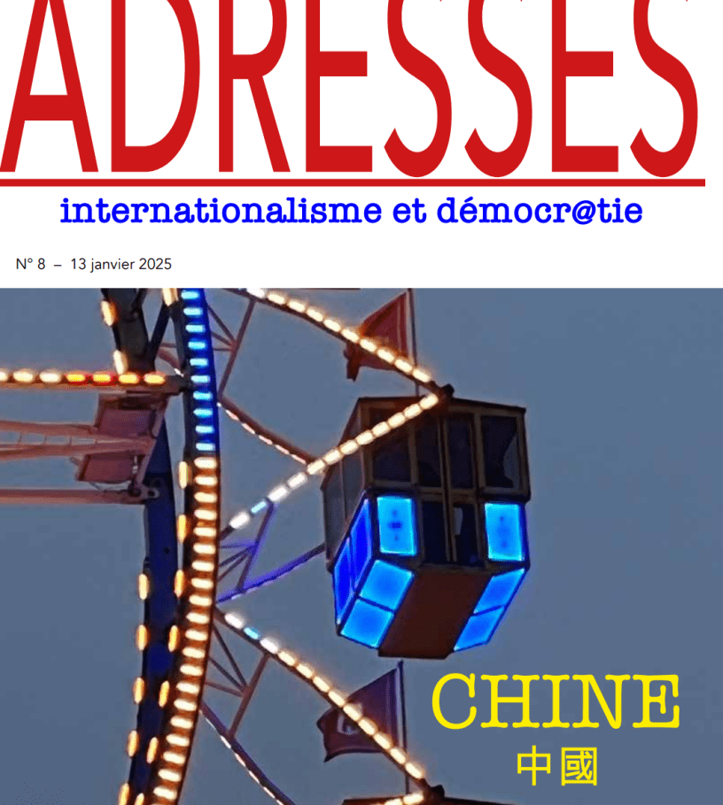 Le numéro 8 de la revue Adresses : internationalisme et démocratie est exclusivement consacré à la « question chinoise ». Il paraît simultanément en français et en anglais.