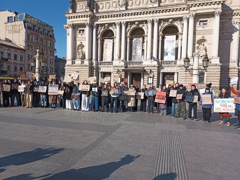 Aujourd’hui, nous avons rejoint la manifestation de soutien aux acteurs du Jeune Théâtre de Kyiv, qui exige la suspension d’Andriy Bilous de ses activités pendant l’enquête. Il est accusé de harcèlement sexuel à l’université et au théâtre. De nombreuses personnes ont participé à la manifestation : des étudiants, des acteurs et de simples citoyens concernés. Ensemble, nous avons montré que la voix des victimes doit être entendue, et nous avons partiellement atteint notre objectif, puisque l’administration de la ville de Kyiv a promis de répondre aux demandes des manifestants.