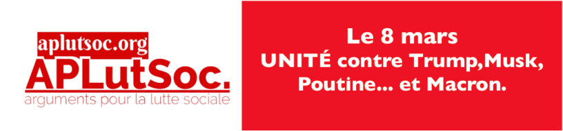 Voici en deux formats (png et pdf) le flyer réalisé par la rédaction d’Aplutsoc (Arguments Pour la Lutte Sociale) pour appeler aux manifestations du 8 mars 2025.