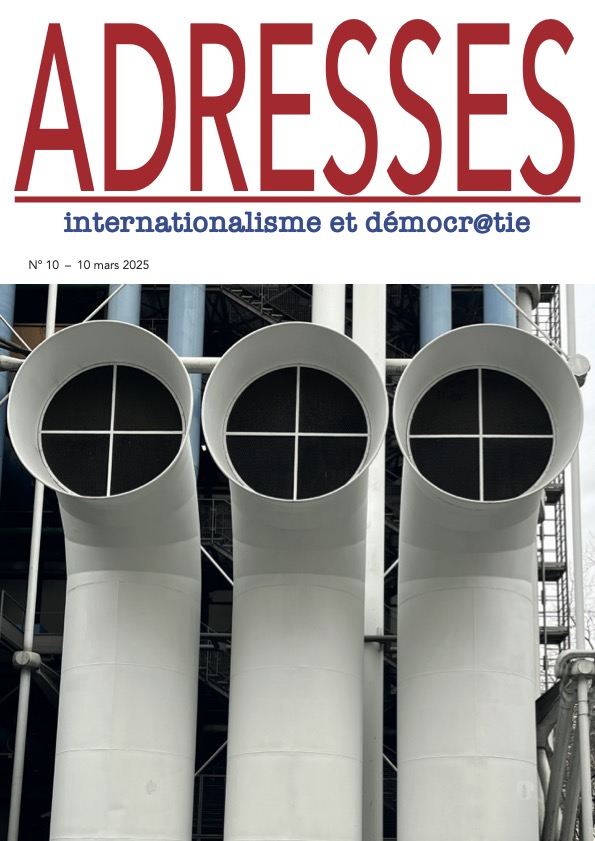 C’est le défi que veut relever Adresses : explorer l’internationalisme et la démocratie d’hier et d’aujourd’hui, en articulant les thématiques suivantes : « Émancipation du travail, autogouvernement, autodétermination, autogestion, auto-organisation, féminisme et genre, révolution, renversement/dépassement du capitalisme, alternatives, droit des peuples à disposer d’eux-mêmes, démocratie socialiste, reconversion industrielle pour une production socialement utile et écologiquement soutenable, refus du campisme et lutte contre tous les impérialismes [10] ».
