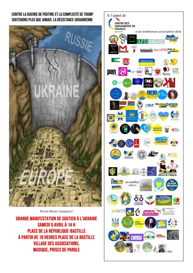 4 commentaires sur « Contre la guerre de Poutine et la complicité de Trump ! Grande manifestation Paris samedi 5 avril 2025 à 14H, de République à Bastille. »