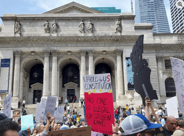 Ces « journées » nationales de manifestations contre le pouvoir en place sont un phénomène historique aux États-Unis. La participation populaire draine des gens de toutes générations dont certains ont voté Trump. L’angoisse devant la destruction totale d’un système de santé déjà défaillant est souvent un mobile fort. Ces actions ne viennent pas d’organisations nationales appelant de façon claire : les directions syndicales sont aux abonnés absents. Mais les réseaux organisateurs – Federal Unionist Network, Hands Off, FiftyFityOneMovement, et leurs équivalents locaux qui foisonnent – sont formés de sections syndicales et de militants syndicaux, qui donnent son armature à la résistance anti-Trump. Leur prochaine date rejoint le monde entier, puisque c’est le 1° mai.