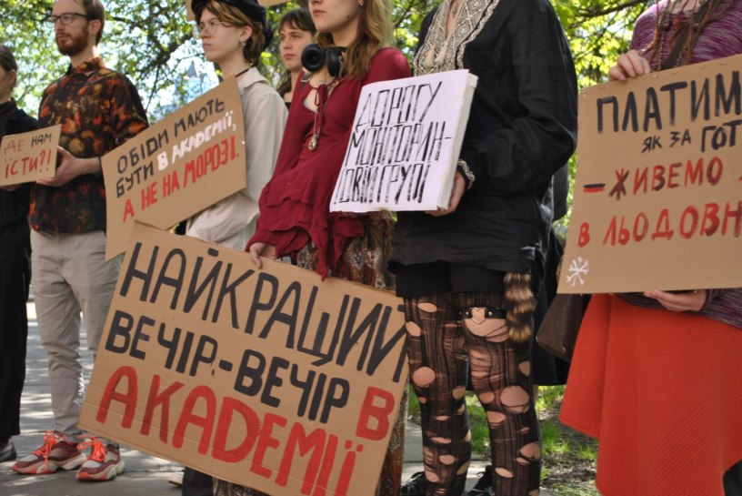 Le vendredi 18 avril, l’administration de l’Académie a pris la décision très commode d’introduire un format d’apprentissage en ligne le lundi 21 avril, justifiant cette décision par le risque accru de bombardements dans la période d’après Pâques. Nous avons des raisons de penser que cette décision a été influencée non seulement par des préoccupations sécuritaires, mais aussi par la volonté d’empêcher le piquet de grève.