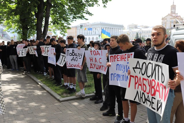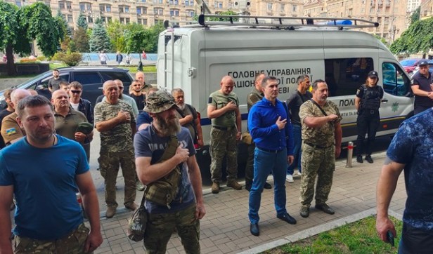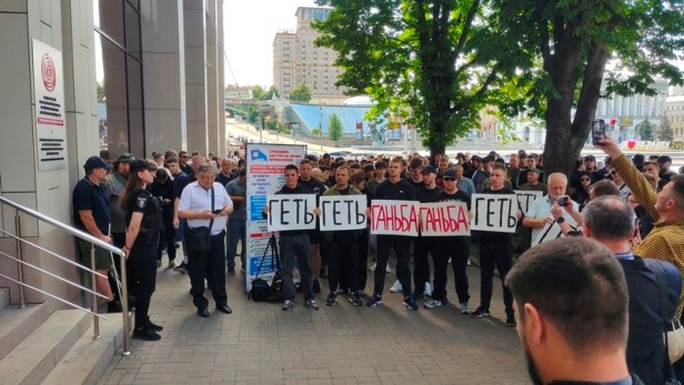 Un important dispositif policier était présent sur les lieux. Les tentatives répétées des travailleurs pour rejoindre leur lieu de travail sont restées vaines ; les forces de sécurité privées du bâtiment, sous protection policière, n’ont réagi d’aucune manière. Un nombre important de personnes se sont rassemblées devant le bâtiment notamment des membres du Syndicat pan-ukrainien des défenseurs de l’Ukraine, athlètes et travailleurs. Il s’agit de militaires, d’anciens combattants, de militaires blessés au combat et handicapés.