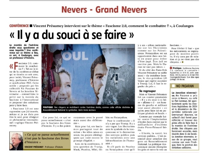 Fin mars j’ai tenu une conférence-débat à Moulins sur « le fascisme 2.0 » qui a réuni 70 participants, toute la gauche locale hors LFI.