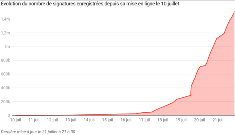 Pour mémoire, en 2018, le mouvement des Gilets Jaunes était parti d’une modeste pétition contre la hausse des carburants. La présente pétition partie d’une initiative individuelle a rencontré un fort écho avant même la mise en branle des forces organisées du mouvement social et écologique.