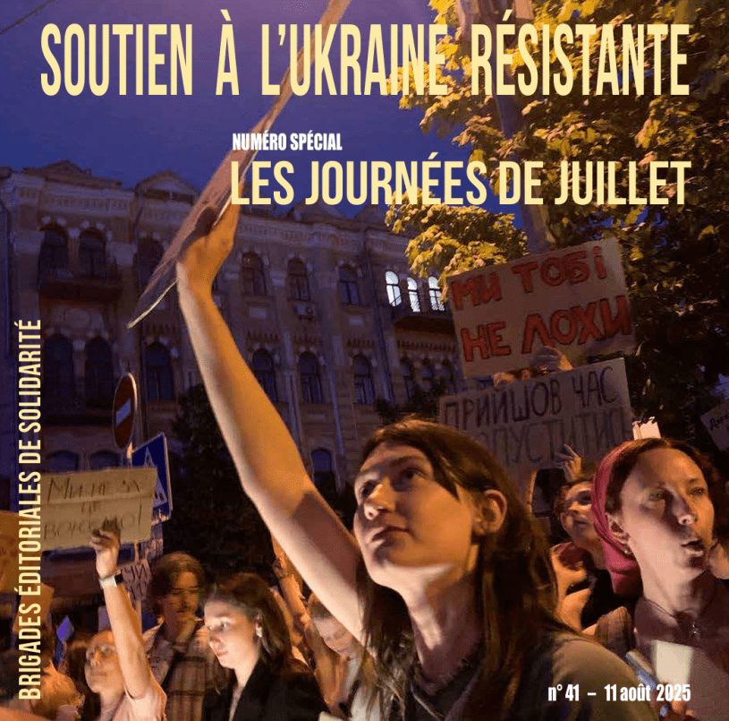 L’équipe de rédaction du bulletin Soutien à l’Ukraine Résistante vient de produire un numéro 41 spécialement consacré aux journées de Juillet 2025 en Ukraine qui ont vu la levée en masse de la jeunesse avec le soutien explicite des plus larges couches de la population contre la fameuse loi N°12414 qui visait à étouffer l’indépendance et l’action des organes de lutte contre la corruption. Cette mesure relevant d’une orientation typiquement oligarchique a suscité un rejet massif avec plusieurs journées de mobilisation de rue à travers tout le pays malgré les contraintes de la guerre, alors même que la Russie a intensifié durant tout le mois de juillet les bombardements nocturnes sur les centres urbains.