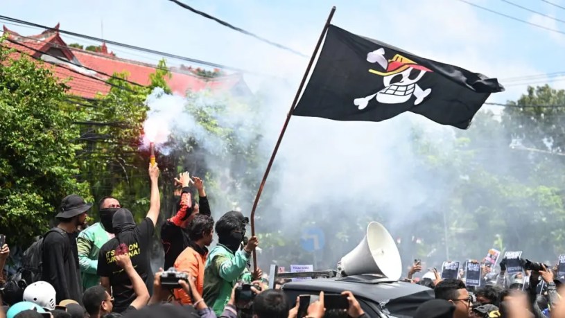 Le mois dernier, le Népal, l’Indonésie, les Philippines et Madagascar ont connu d’importantes manifestations menées par des jeunes indignés par la corruption gouvernementale et les inégalités. Un drapeau commun flottait au-dessus de chaque manifestation : une tête de mort souriante coiffée d’un chapeau de paille.