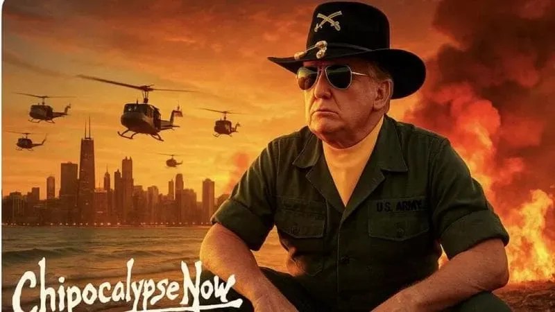 L’illustration de cet article vaut bien quelques lignes: il s’agit d’un montage avec comme référence une scène du film « Apocalypse Now » où un général US déclare » j’aime l’odeur du napalm le matin »…. L’incroyable de ce montage c’est son origine : document officiel de la Maison Blanche…. Aucune honte pour Trump, , rien à attendre de lui bien sur, il est passé très rapidement, et c’était prévu, de Drill, baby, drill à Kill, baby, kill….