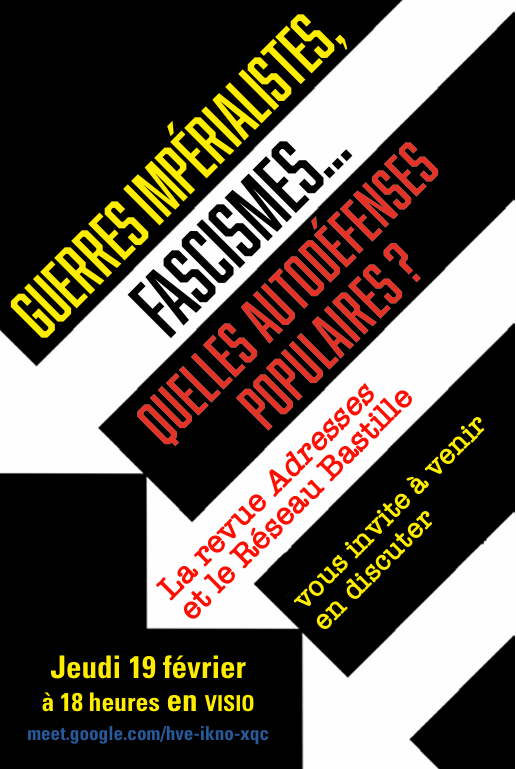 Guerres impérialistes, fascismes, quelles autodéfenses populaires ? Jeudi 19 février 2026 à 18H en visio. Adresses & Réseau Bastille.