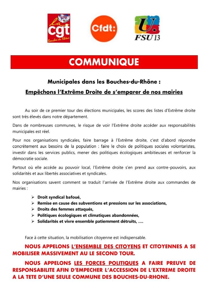 Document : déclaration des UD CGT, CFDT et FSU des Bouches du Rhône