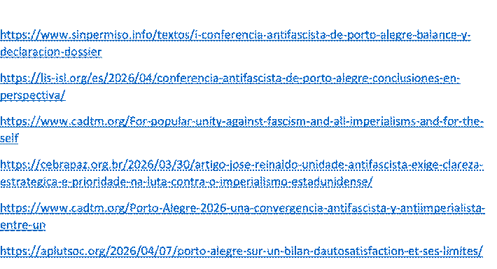 Il serait bon qu’apparaisse sur le site un lien vers le manifeste du Réseau international des syndicats antifascistes, dont font partie la CUT, la CGIL, la CGT, les CCOO et d’autres[12].