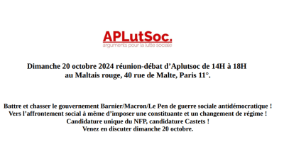 Mercredi 2 octobre 2024 à 19H, réunion-débat en visio organisée par Aplutsoc.